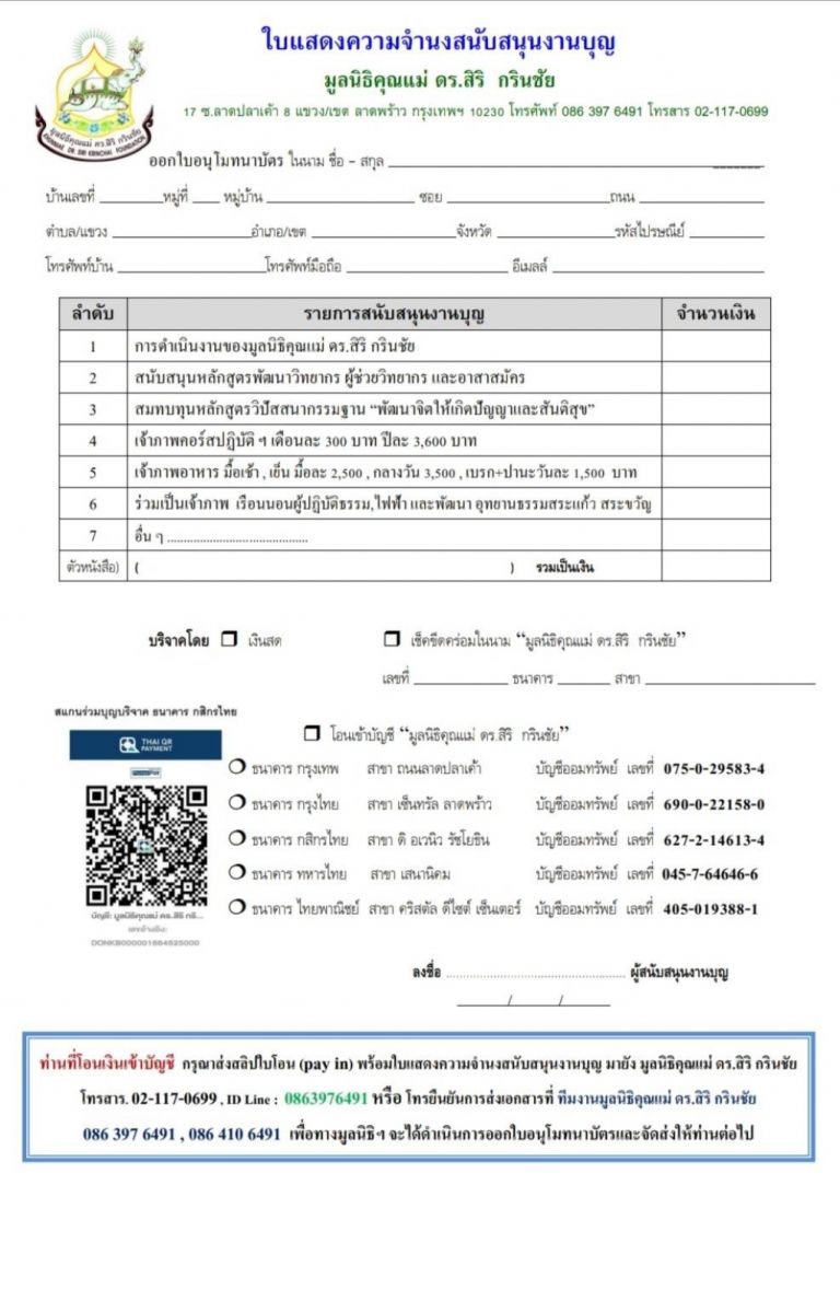 ใบแสดงความจำนงสนับสนุนงานบุญ