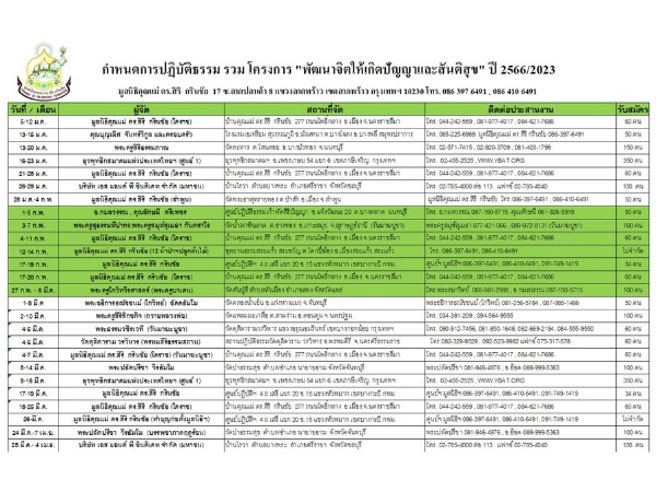 ตารางปฏิบัติธรรม 2566