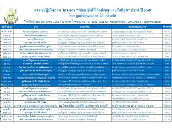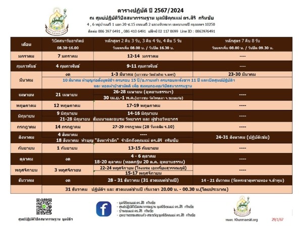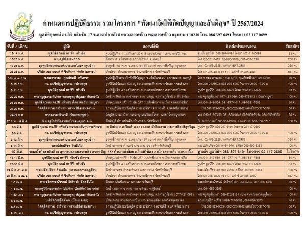 ตารางสมัครปฏิบัติธรรม 2568