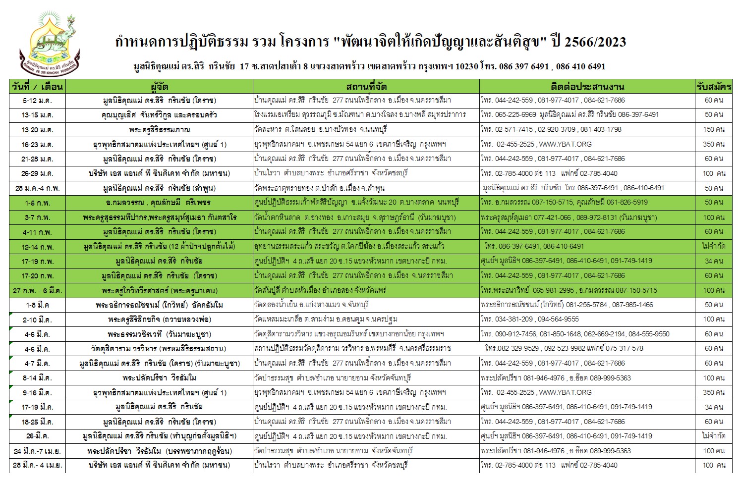 ตารางสมัครปฏิบัติธรรมศูนย์หัวหมาก 2567