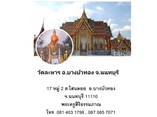 วัดละหาร ต.โสนลอย อ.บางบัวทอง จ.นนทบุรี 11110