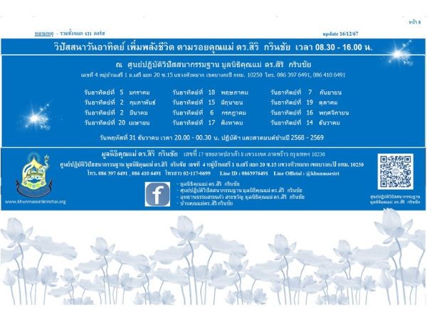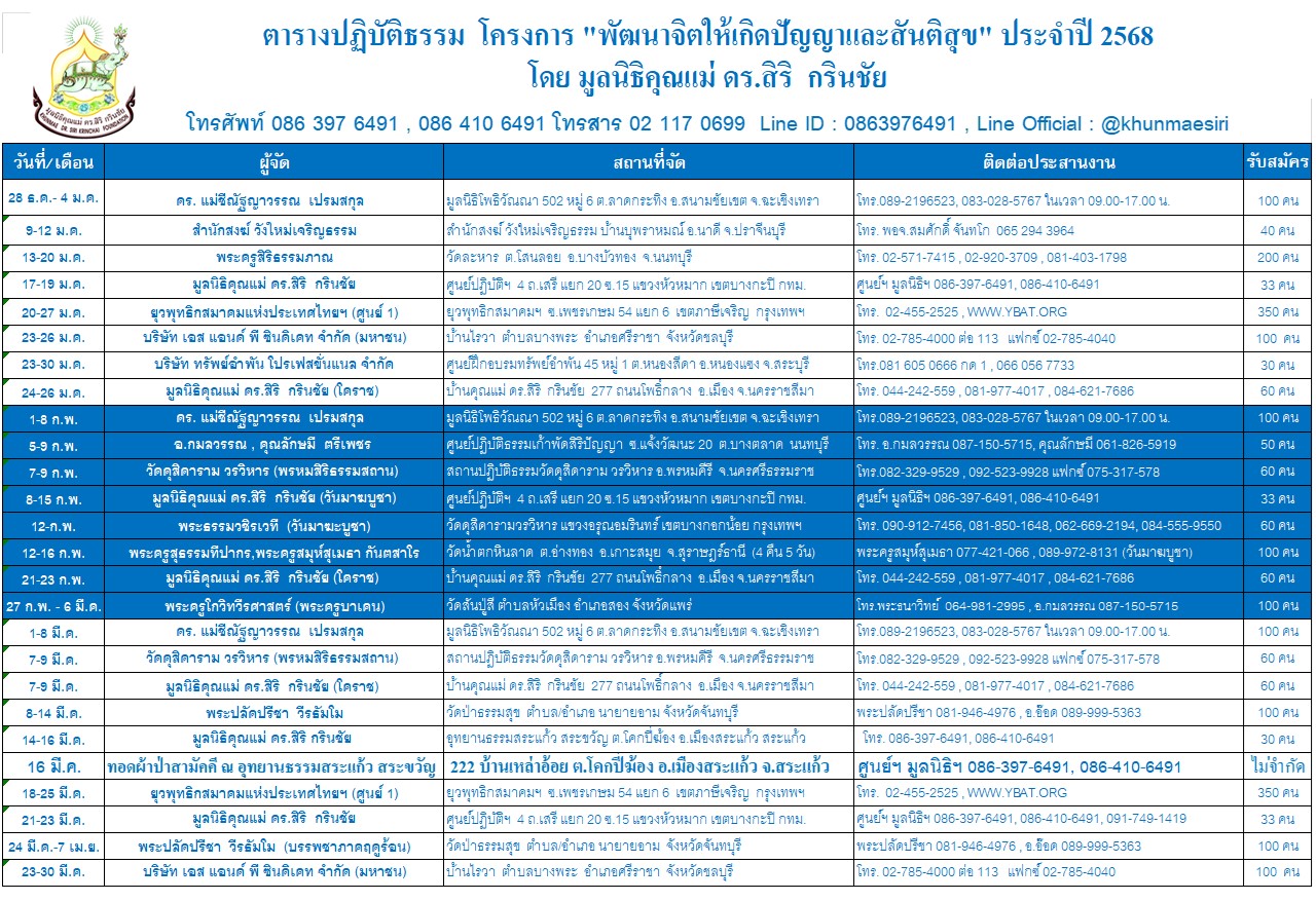 ตารางสมัครปฏิบัติธรรมศูนย์หัวหมาก 2567